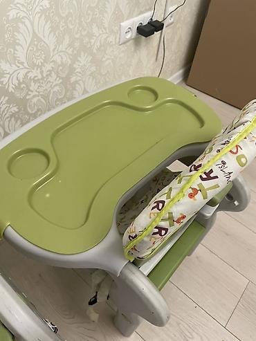 Подходит для кормления, игр и творчества: в высоком положении — как классический стульчик для кормления, в раздельной компоновке — как детский письменный столик со стульчиком. Столешница легко моется.