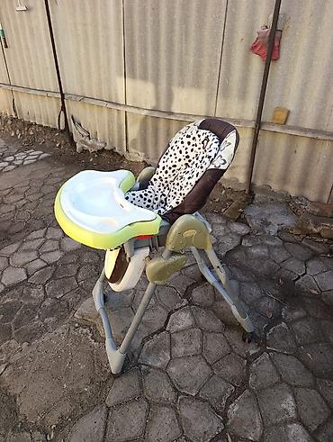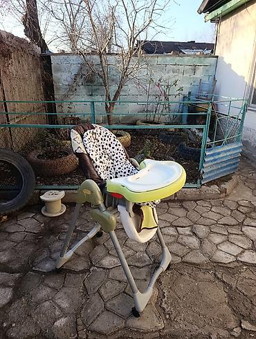 Цвета: серый каркас, салатовый столик, чехол в коричнево-белой гамме с пятнышками. Подходит для детей, которые уже сидят, и до раннего возраста. Отлично для дома и дачи. Посмотреть можно в районе стадиона Локомотив на Пишпеке