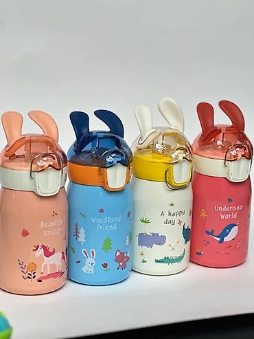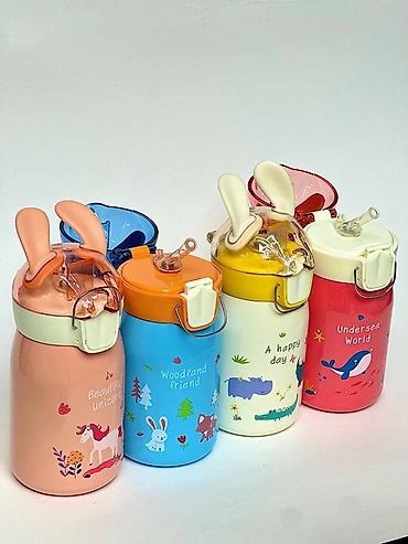 Детские термосы-поильники с трубочкой и ушками-зайчиками