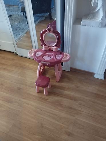 Детский столик розового цвета, оснащенный зеркалом, светится и музыка играет. Можно выключать музыку и подсветку . В комплекте идет небольшой стульчик. Столик имеет декоративные элементы, такие как бантик и сердечко над зеркалом Подходит для сюжетно-ролевых игр, для Модниц ,развивая воображение и мелкую моторику ребенка. Идеально для детской комнаты.