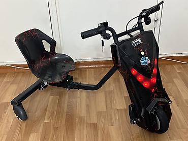 - Широкое пластиковое сиденье с низкой посадкой, задние роликовые колеса для дрифта