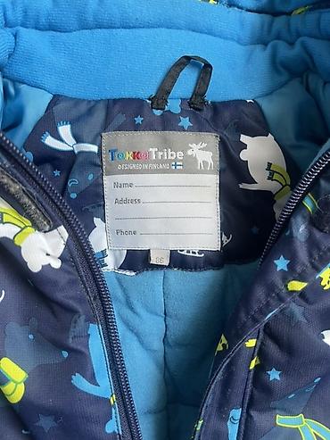 Отлично подходит для прогулок в холодную погоду. Цвет: тёмно‑синий с голубым и салатовыми акцентами. Размер на ярлыке: 86. Брэнд: Tokka Tribe. Designed in Finland.