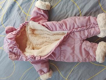 Теплый комплект для девочки: плюшевый комбинезон и зимний пуховый конверт-комбинезон. 1) Плюшевый комбинезон: - Цвет: пудрово-розовый. - Материал: мягкий ворс/флис с утепляющей подкладкой. - Капюш...
