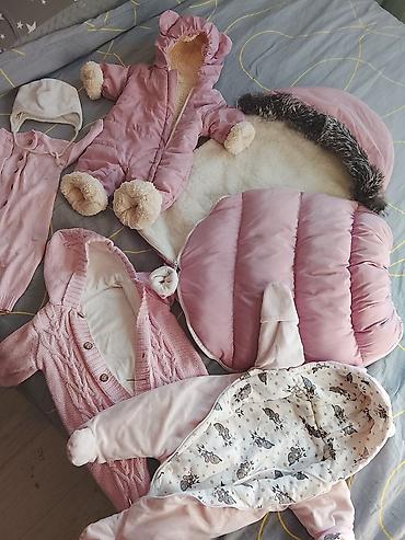 Теплый комплект для малышей (3–7 месяцев) 1) Зимний розовый комбинезон-конверт с капюшоном: - Мягкая плюшевая подкладка внутри - Две длинные молнии спереди для удобного одевания - Закрытые ножки и...