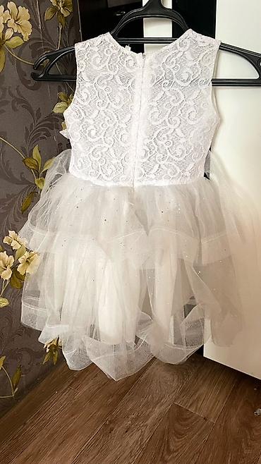 Детское праздничное платье «Белый ангел» на 6-7 лет, абсолютно новое, одевали 1 раз на НГ - Цвет: белый, многослойная фатиновая юбка с объемными ярусами - Материалы: верх — атлас, воздушные рукава...