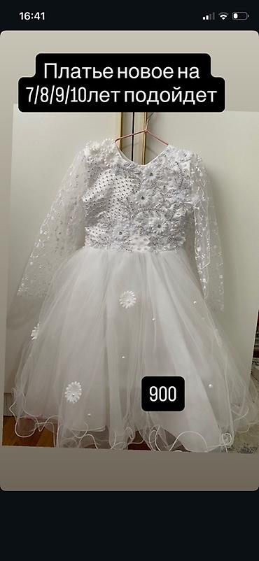 Нарядное белое детское платье для девочек 7–10 лет.
