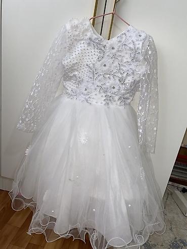 Нарядное детское платье белого цвета На 7-8 лет - Стиль: праздничное/сценическое, пышная юбка. - Верх: сатиновый лиф с мягким блеском, отделка по линии плеч пушистым тюлем/перьями-воланами. - Юбка...1 000 KGS