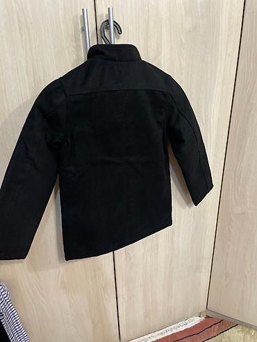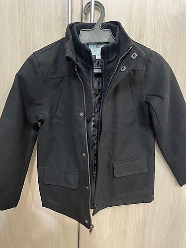 Детское черное пальто, идеальное для различных погодных условий. Эта модель оснащена внутренним слоем, имитирующим толстовку, который застегивается на молнию, обеспечивая дополнительное тепло и комфорт. Внешний слой пальто имеет классический воротник-стойку, застегивается на молнию и дополнительно на кнопки, что позволяет надежно защититься от ветра. Пальто дополнено двумя внешними накладными карманами с клапанами, что делает его практичным выбором для повседневного использования. Размер: 6-7 лет