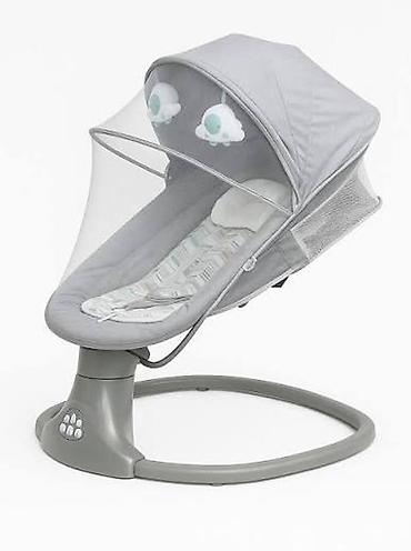 - Детское электрокачели-шезлонг с капюшоном и москитной сеткой. Эргономичное ложе с мягким матрасиком и вкладышем для новорождённого. Регулируемый тент, две подвесные игрушки-облачка, боковые кармашки-сетки для мелочей. Круглое устойчивое основание, панель управления на основании с кнопками режимов. Спинка полулёжа, ремни безопасности, съемный текстиль. Подходит для укачивания и спокойного сна малыша.