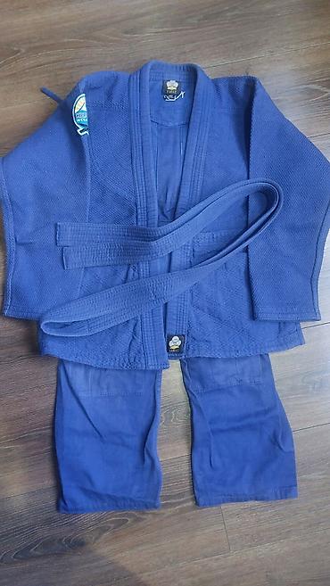 Кимоно для дзюдо (синее), детско-подростковое. Комплектация: - куртка (дзюдоги) из плотной ткани с фактурным переплетением; - брюки на завязках; - пояс в цвет кимоно. Размер: 170 см Особенности: -...