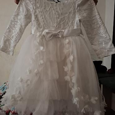 Нарядное детское платье в кремово-молочном оттенке. Подойдёт от 7 до 11 лет . б/ у цена 1500 сом вместе с туникой - Размер: на вешалке указан 56 (ориентируйтесь по меркам/фото). - Верх: плотный...