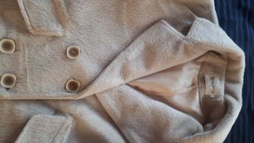 пальто-куртка из мягкого «меха» (искусственная овчинка), молочного цвета. Особенности: - Двубортная застёжка на две тёмные пуговицы - Утеплённая подкладка в клетку (стёганая) - Отложной лацкан/вор...