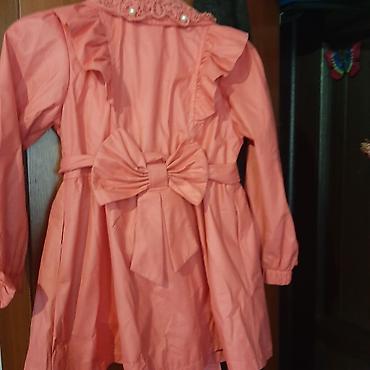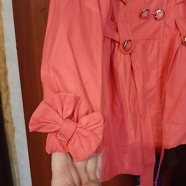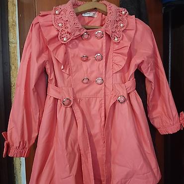 Детское пальто-плащ в стиле тренча, цвет кораллово-розовый. на 2-3года