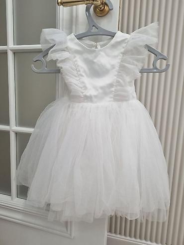 Нарядное детское платье цвета белого для торжеств. Очень красивое платье. Одевали один раз . Подойдет на 5-6 лет. Шлейф съел емный. - Силуэт: пышная юбка из многослойного фатина с каскадным низо...