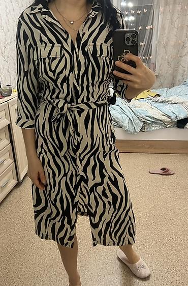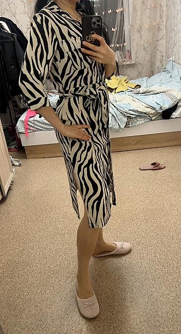 Размер 34 . XS … Платье-рубашка с поясом в принт «зебра».