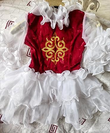 Праздничное детское платье национального стиля - Верх: бархат бордового цвета с богатой белой вышивкой орнаментом и декоративными стразами. - Низ: многослойная белая фатиновая юбка, добавляет объё...