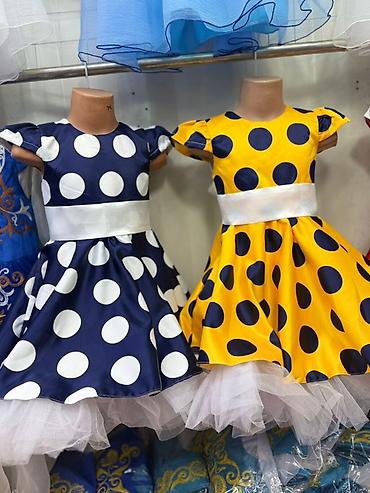 Праздничные детские платья 1) Жёлто-синее платье в горошек - Яркий жёлтый атлас с крупным тёмно-синим горохом - Пышная юбка солнце с несколькими слоями фатина, нижний слой — тёмно-синий - Большой ...