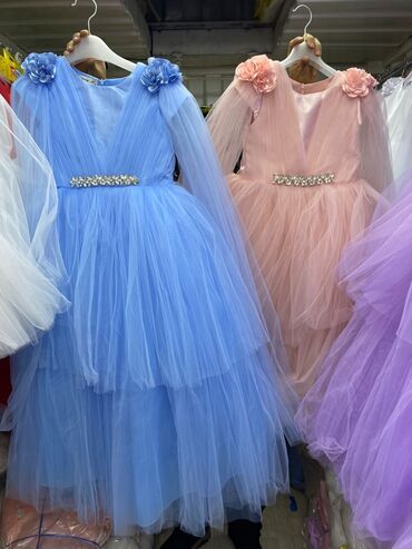 ГолубойНарядные детские платья-принцессы с пышной многоярусной юбкой из фатина.