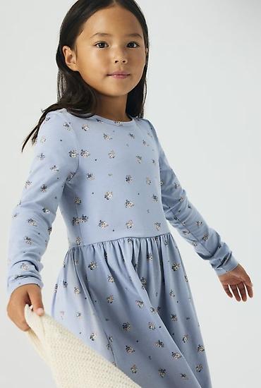 Платье новое для девочки с длинными рукавами и цветочным принтом. Имеет широкий круглый воротник контрастного бежевого цвета. Застегивается на пуговицы сзади. Подойдет для повседневной носки или дл...