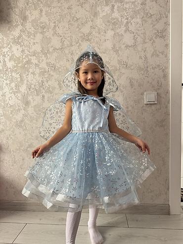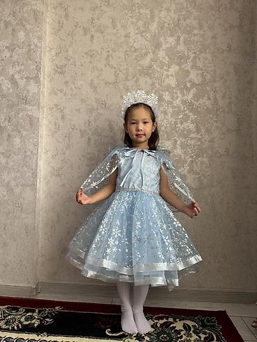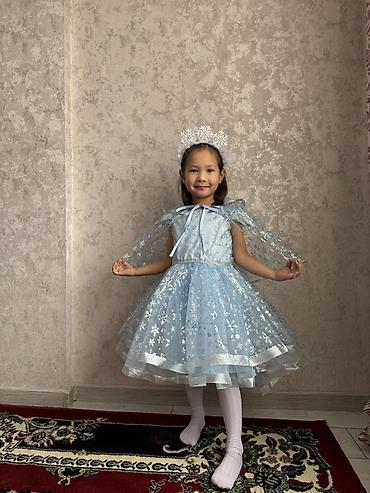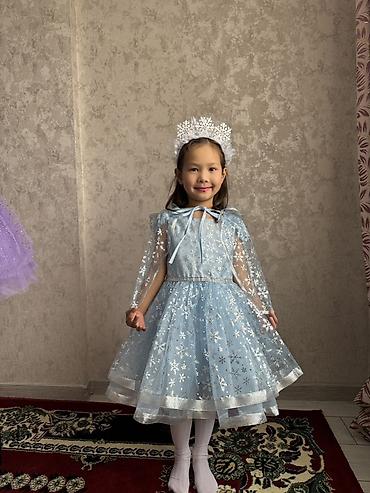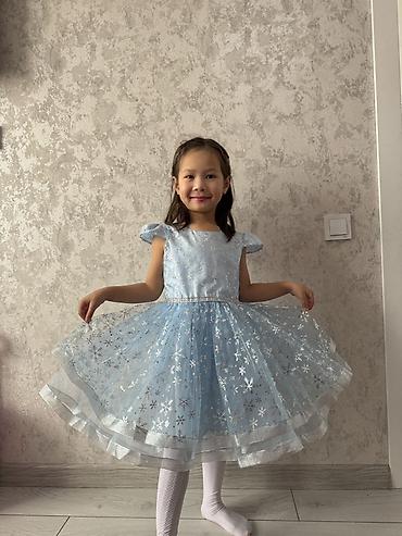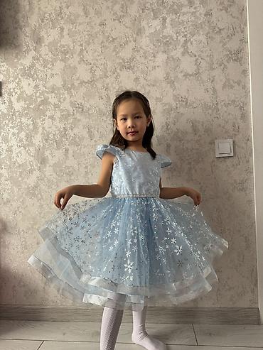 Праздничное детское платье в стиле ледяной принцессы. Одевали 1 раз. На 5-6лет - Цвет: насыщенный голубой. - Верх: гладкая ткань с ярким принтом героини анимационного фильма; круглый вырез. - Рука...