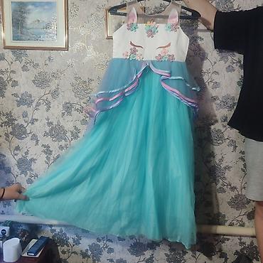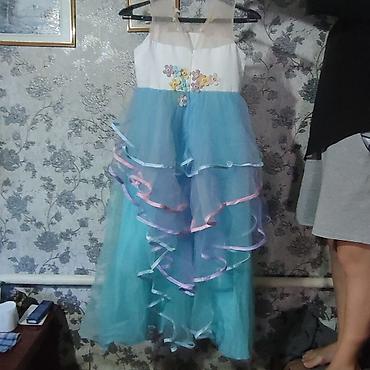 Праздничное детское платье в стиле ледяной принцессы. Одевали 1 раз. На 5-6лет - Цвет: насыщенный голубой. - Верх: гладкая ткань с ярким принтом героини анимационного фильма; круглый вырез. - Рука...