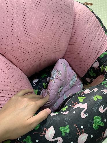 - Форма «обнимашки» удерживает малыша в центре, помогает учиться сидеть и играть.