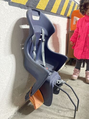 Подходит для перевозки ребёнка за спиной взрослого. Простая установка: металлические дуги вставляются в базу на раме, фиксируются винтами; сиденье снимается/ставится за минуты.