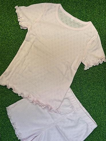 Женская пижама с вишнёвым принтом - Комплект: рубашка на пуговицах с коротким рукавом + длинные брюки. - Цвет/принт: белый фон с мини-вишенками по всей поверхности. - Дизайн: деликатный кружевной ...