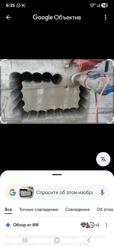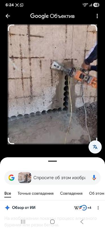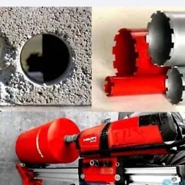 Профессиональные услуги по алмазному бурению и резке для бетона, железобетона, кирпича и камня. Используется стационарное и ручное оборудование с водяным охлаждением и коронками разного диаметра.