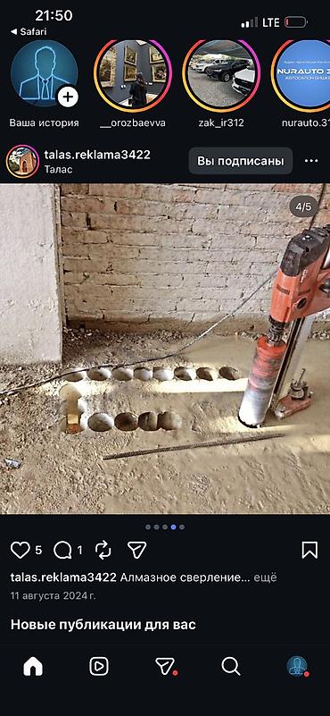 Профессиональные услуги по алмазному бурению и резке железобетона, бетона, кирпича и камня. Работаем стационарными установками с водяным охлаждением и направляющими, что обеспечивает точную геометрию и аккуратные кромки без ударной вибрации.
