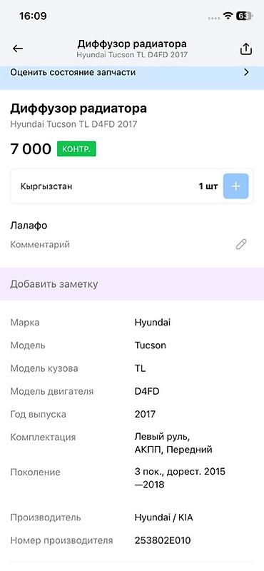 Hyundai Tucson 1.7 diesel 2017 разбор на запчасти Привезен из Кореи
