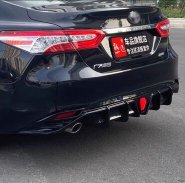 Нижняя накладка/диффузор на задний бампер на Камри 70-75 (глянцево‑чёрный). Особенности: - Материал: пластик (ABS). - Покрытие: глянец, чёрный цвет. - Конструкция с крепёжными ушками по всей длин...