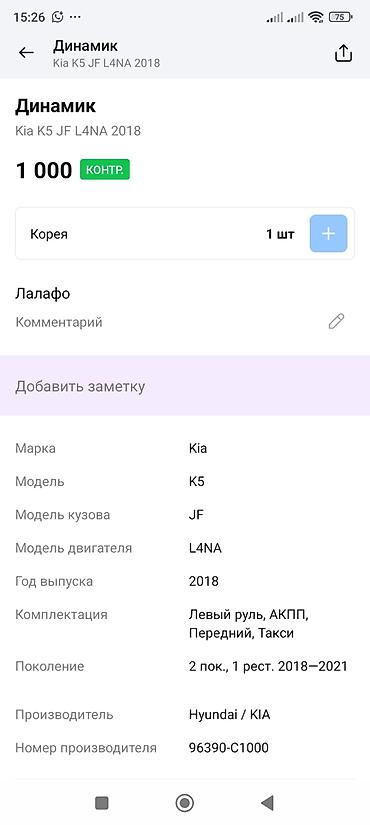 Динамик (пищалка) дверной/торпедо для Kia K5 (JF), двигатель L4NA, год 2018.