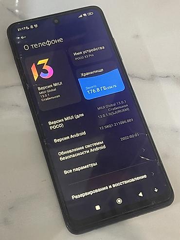 POCO X3 Pro, 6.67" IPS с дыркой под фронтальную камеру по центру. На экране видны трещины. MIUI Global 13.0.3 (для POCO), Android 12. Память: 128 ГБ, занято 101.6 ГБ (по скриншоту “О телефоне”). Цв...