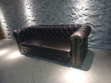 Диван «Честерфилд» из темной кожи