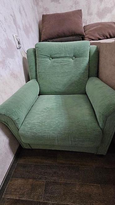 Зелёный диван и кресло в классическом стиле Честерфилд. Особенности: - Обивка: экокожа глубокого изумрудного оттенка - Каретная стяжка с декоративными пуговицами по спинке, сиденью и подлокотникам...