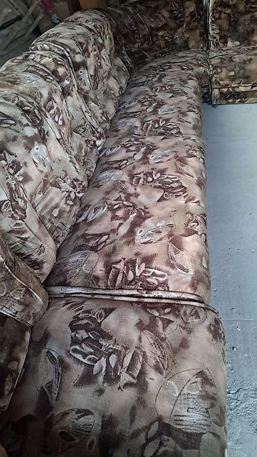 Угловой диван с оттоманкой, обитый мягкой велюровой тканью