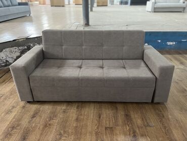 Компактный диван-кровать нейтрального серого цвета. Прямые подлокотники и лаконичный дизайн делают его подходящим для небольших помещений. Обивка с декоративной прострочкой в виде квадратов придает дивану современный вид. Легко раскладывается, образуя удобное спальное место для одного или двух человек. Отличный вариант для гостиной или спальни.