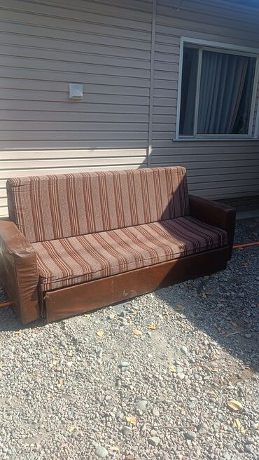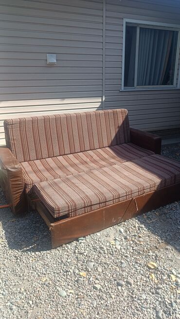 КоричневыйУдобный диван-кровать, состояние хорошее -4000с. Полосатый Диван требует реставрации -2000с. Есть ещё журнальный столик - 500с , тумбочка под телевизор -500с.