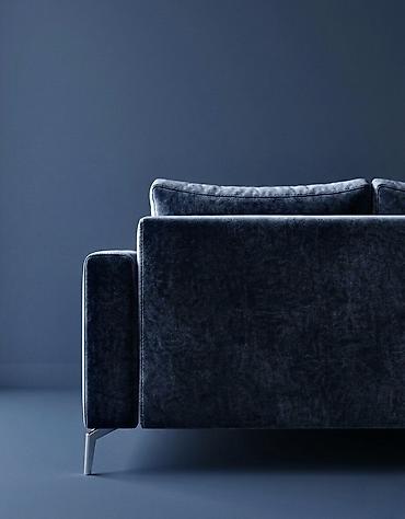 - Опоры: изящные металлические ножки хромированного оттенка, придают лёгкость и визуально «парящий» эффект; удобный доступ для уборки под диваном.