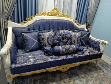 - Акцентная золотая резьба по низу и по гребню спинки подчёркивает статус и делает диван центром интерьера.