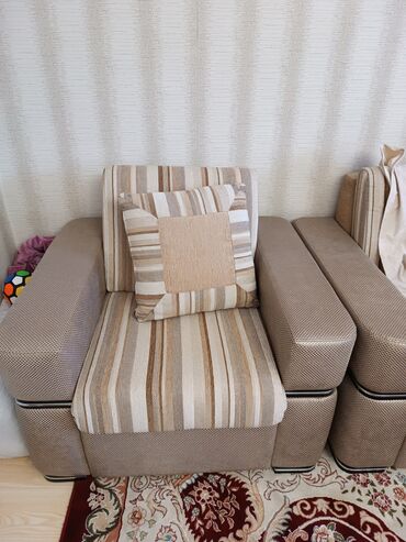 Комплект мягкой мебели для гостиной: диван угловой + два кресла - Состав: большой прямой диван на 4 посадочных места, два отдельные кресла, набор декоративных подушек. - Дизайн: современный, с ров...