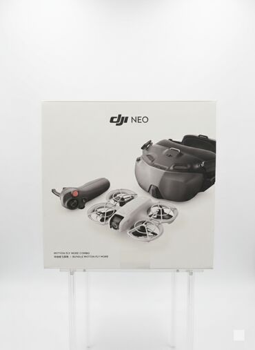 - Комплект для полётов от первого лица: мини‑дрон DJI NEO, очки FPV, контроллер движения DJI Motion Controller и расширенный набор аксессуаров.