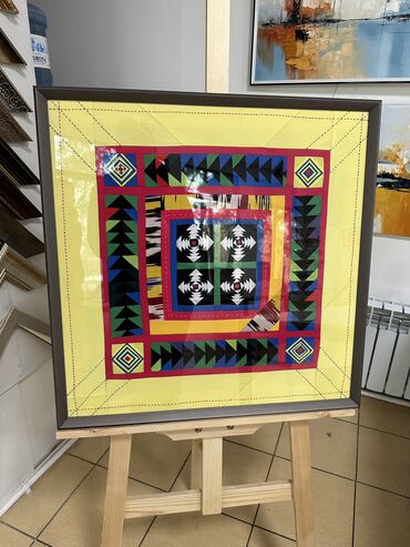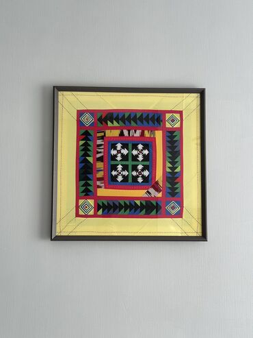 Настенное панно, в национальном стиле, ручной работы, размер примерно 1 м в ширину и высоту, в хорошем состоянии, цена 5000 сом - Техника: смешанная текстильная аппликация/вышивка с фактурными эле...