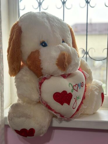Большие мягкие игрушки 1) Плюшевый мишка бежевого цвета в голубом свитере с надписью “Love you”Мишка мягкий и объемный, подходит в качестве подарка. Б/у в отличном состоянии. 1000 сом 2) Такой же...