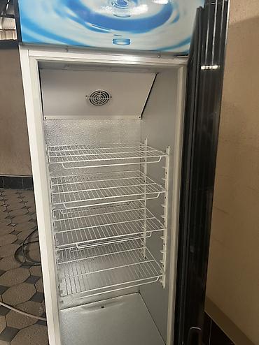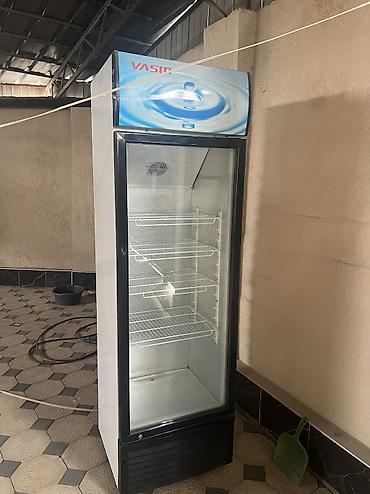 - Вертикальная витрина с прозрачной стеклянной дверью для напитков и продуктов.