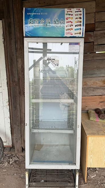 - Конструкция: металлический корпус, стеклянная дверь с ручкой, 3 проволочные полки внутри, нижний выносной конденсаторный блок.