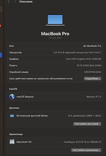 - Процессор: 6‑ядерный Intel Core i7 2,6 ГГц — подходит для многозадачности, разработки, графики и видеомонтажа.