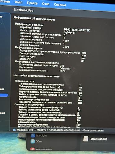 Аккумулятор: 85% ёмкости, 285 циклов