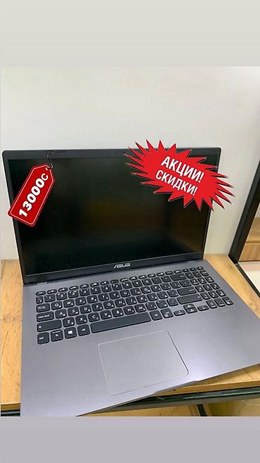 - ASUS — 13000 с. На клавиатуре цифровой блок, большой тачпад. На экране наклейка «Акции! Скидки!».
